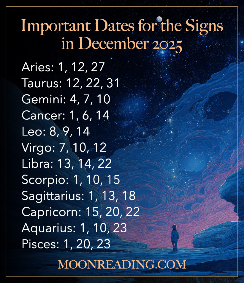 Each month, we look at all the Aspects and Transits occurring with your Ruling planet and with your Star Sign and choose the top three days where the strongest astrological energies impact your sign.