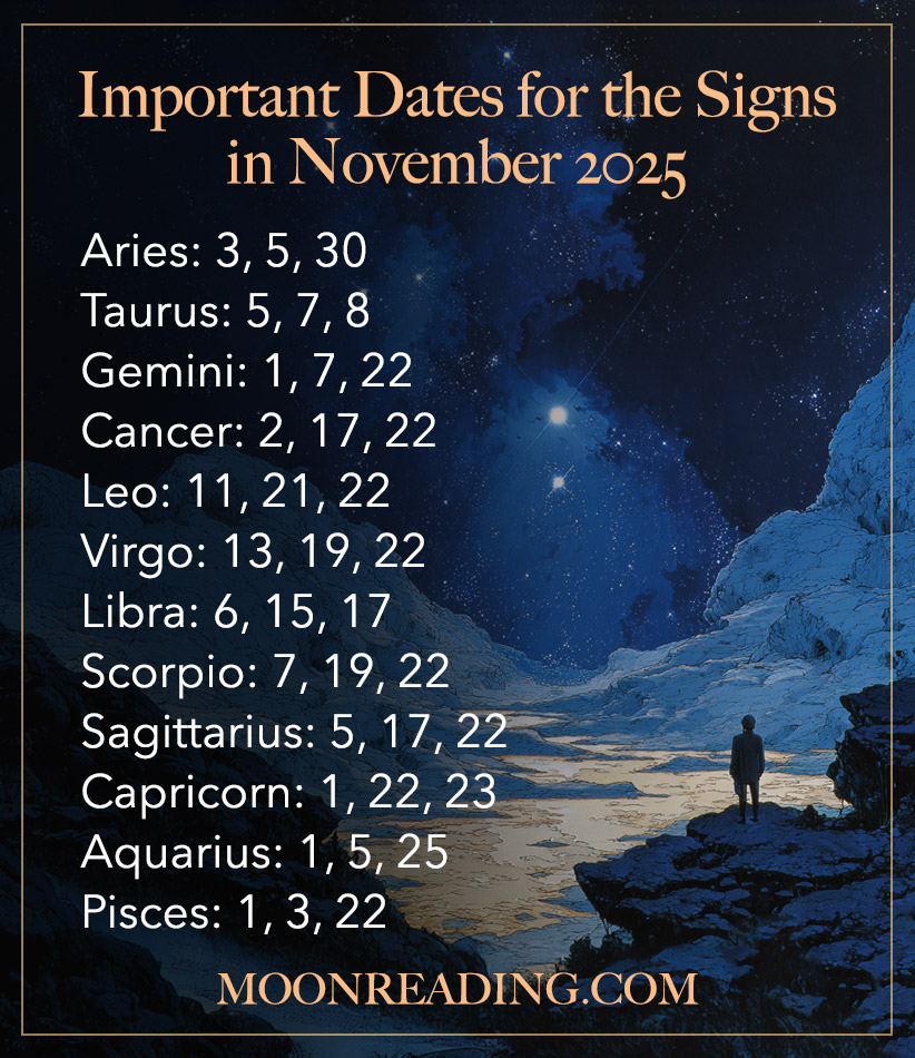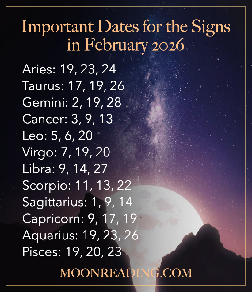 Each month, we look at all the Aspects and Transits occurring with your Ruling planet and with your Star Sign and choose the top three days where the strongest astrological energies impact your sign.